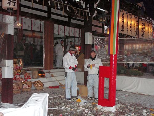 お構いなしに本殿をめがけて入ってくる人たちは、まずはさい銭を遠投!